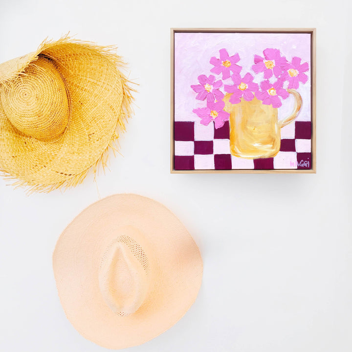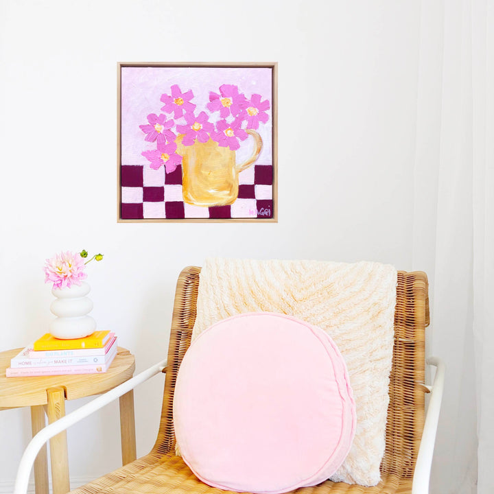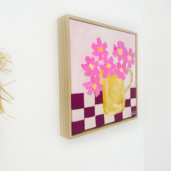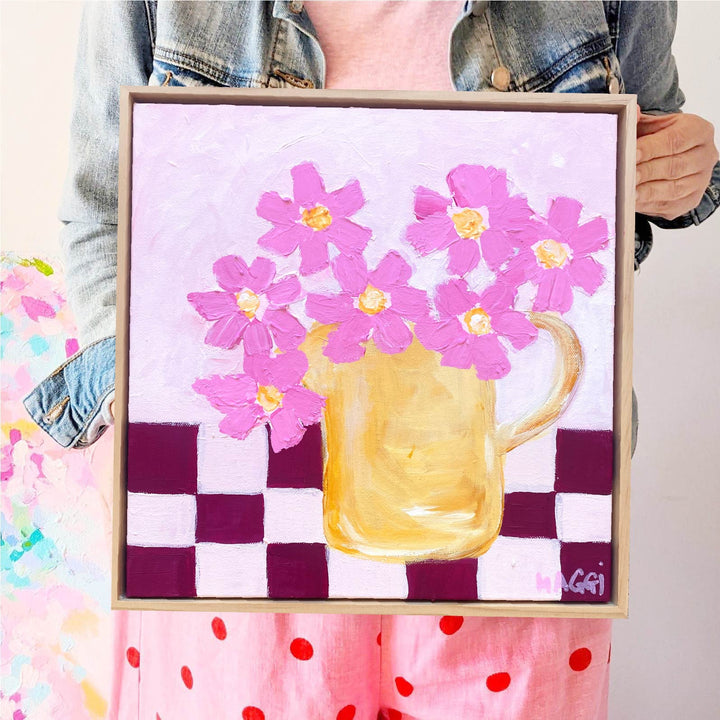 Acrylic on hand stretched canvas framed timber. Artwork comes with a wire ready to hang on the wall.