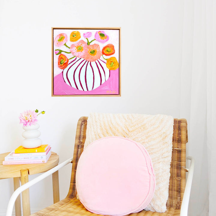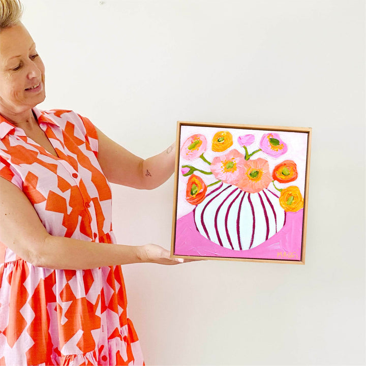 Acrylic on hand stretched canvas framed timber. Artwork comes with a wire ready to hang on the wall.