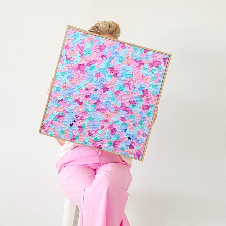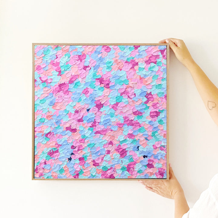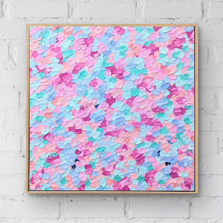 Acrylic on gallery wrapped canvas framed in raw Oak.