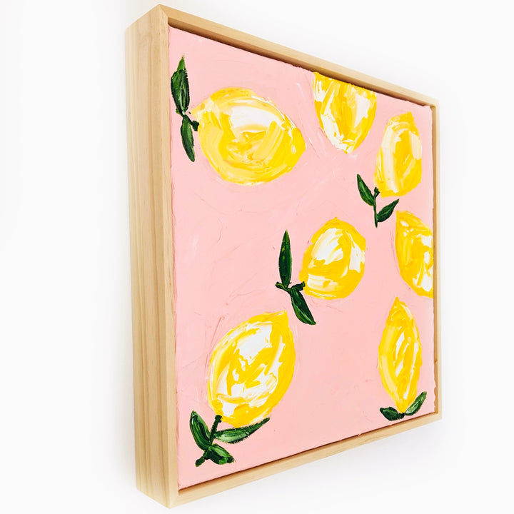 Acrylic on hand stretched canvas framed in a raw Pine floating frame.